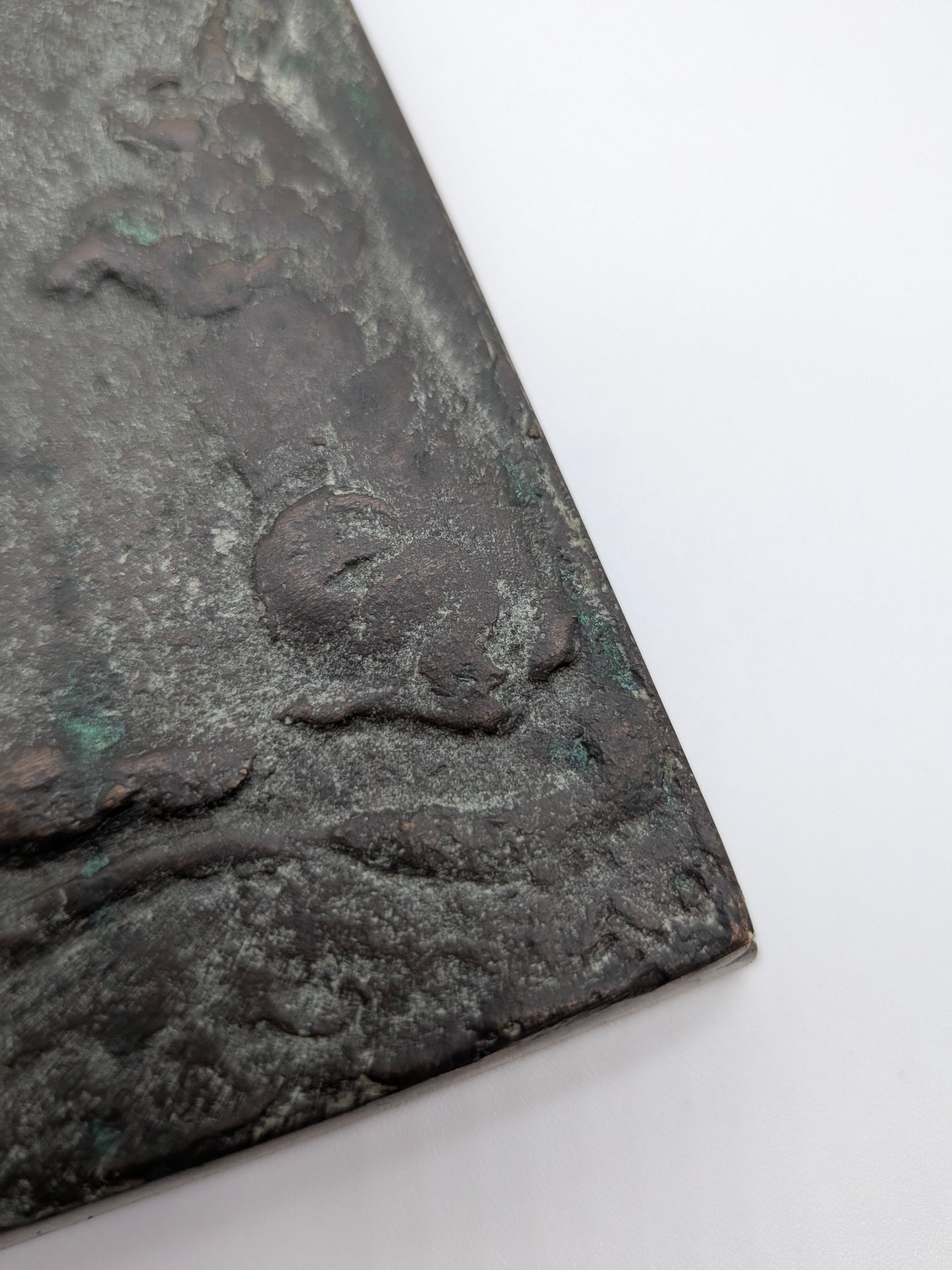 Dit indrukwekkende bronzen reliëf van de Nederlandse beeldhouwer Adri van Rooijen is een meesterlijke vertolking van het klassieke thema 'Adam en Eva'. Het werk typeert Van Rooijen’s unieke vermogen om figuratieve elementen te verweven met een organische, bijna abstracte vormentaal.